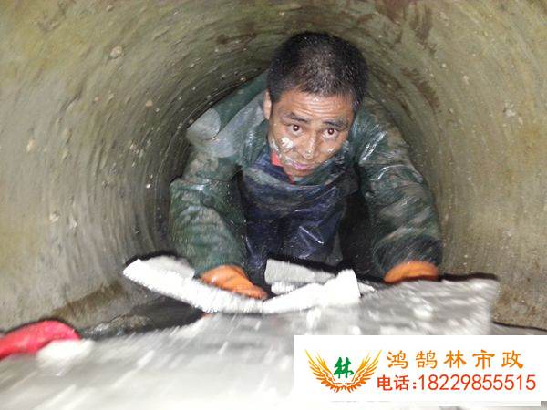 管道疏通 技术部人员正在腐臭难闻的管道,清理垃圾!