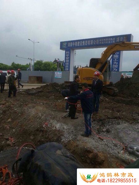 2014年4月12日我公司肖总带领一批专业清理管道的工人前往湖南中格建设集团有限公司进行管道清理,在长沙市长的亲临指导下顺利完成。