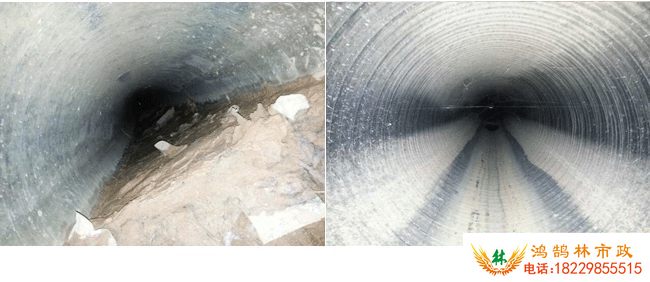 未清理前,厚厚的淤泥和垃圾 清理后,干净的管道