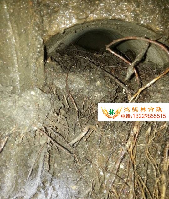 技术人员施工现场拍回来的图片,此次任务非常艰巨,管道里全部被泥土,树根堵住。