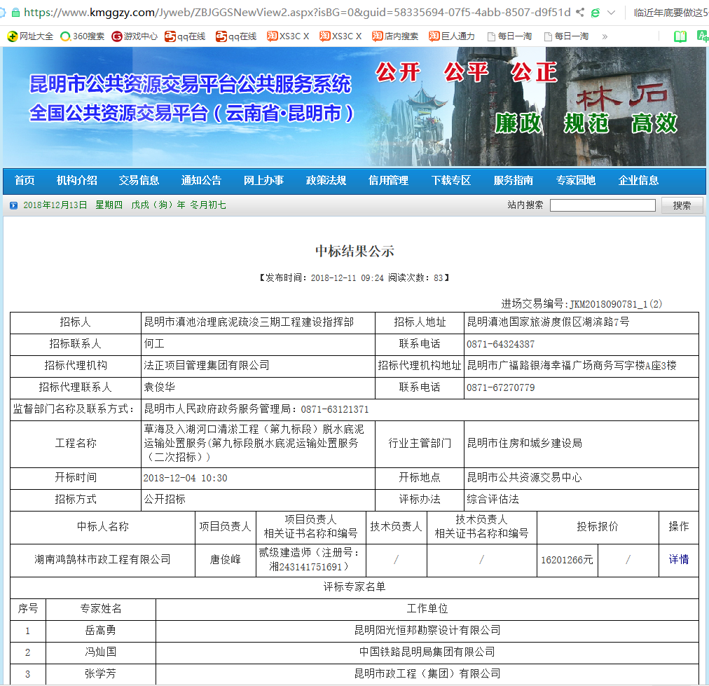 热烈祝贺我公司成功中标昆明草海及入湖河口清淤工程,中标金额达1600多万。