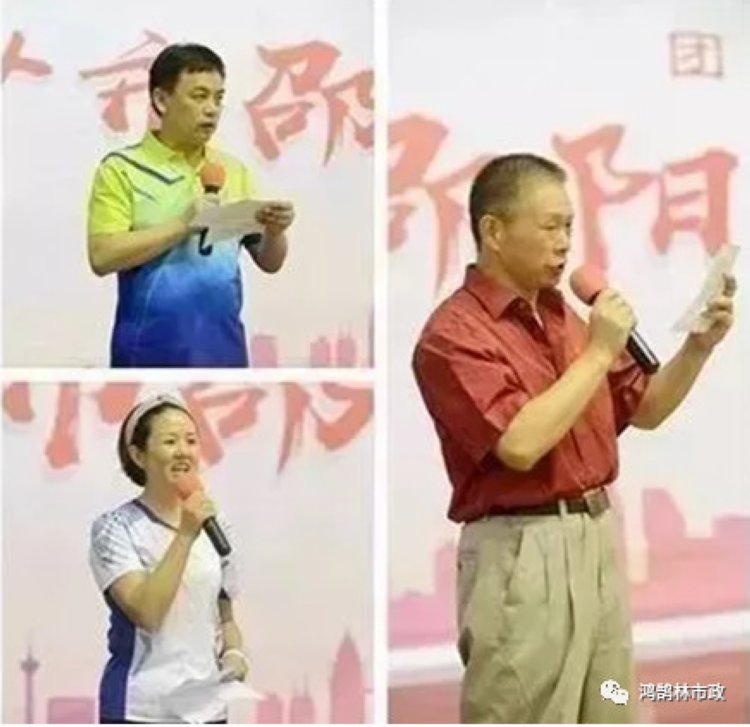 裁判员代表陈瑞寒宣誓、参赛队员代表雷娟宣誓、领队代表周国立宣读文明比赛承诺书