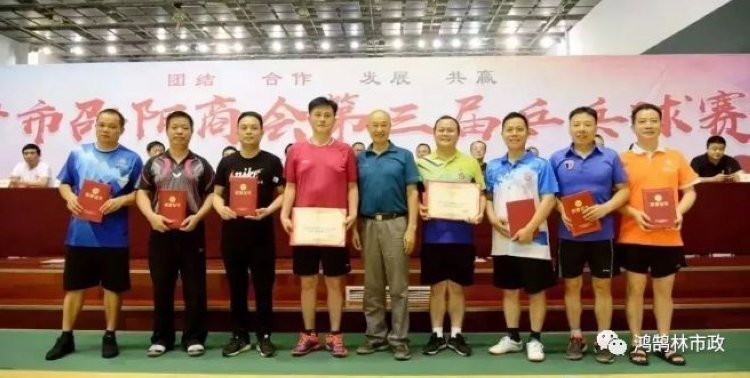 鸿鹄林市政董事长在省外特为参赛队员送上鼓励与祝福:鸿鹄高飞,一举千里;左右逢源,得心应手;一拍在手,拍拍即中;邵商九组,旗开得胜!为:邵商会乒乓球联合大赛总决赛开幕取得圆满成功鼓掌,为邵商九组参赛队员加油,为鸿鹄林市政参赛队员加油,为鸿鹄林董事雷将成先生加油!