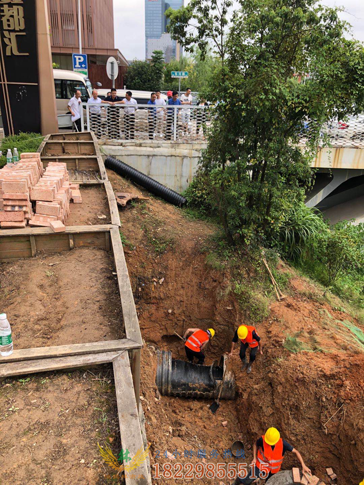 2020年8月,我单位承接由【长沙市岳麓区住房和城乡建设局】建设的【肖河排口截流应急工程】的施工,本次排水工程的施工范围为肖河看云路至枫林路6个排放口,赏月路右岸04号排口、赏月路左岸箱涵排口的末端截流,在原有雨水排放主管上新建截流井,将晴天雨水管道内的水截流至排口周边现状已建的污水管道,确保晴天时无污水下河,减少对肖河的水体污染。本工程在雨水系统末端主干管上设置截流井,将雨水干管内的晴天污水截流至临近的污水管道,肖河的两侧地块的污水均流至南园路望城坡污水提升泵站。本工程采用的在雨水管上设置截流井的处理方式,仅限于当前排口晴天时有污水排出的应急处理,在远期有条件时,应尽快向上流溯源,查出晴天时雨水管道的污水来源,整治排口上游的问题排水点,最后实现排口晴天时雨水管道内无污水的情况,最终实现可以拆除本工程中雨水干管上新建的截流井,实现片区内部完全的雨污分流。